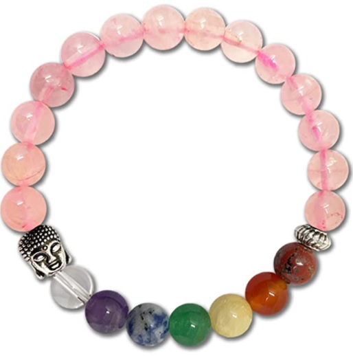 PULSERA 7 CHAKRAS CUARZO ROSA 6mm