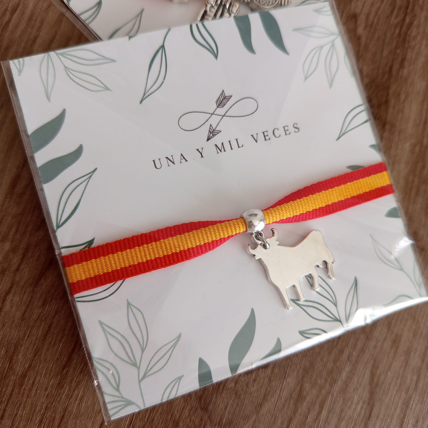 Pulsera taurina con cinta de España clásica y colgante toro Pulsera taurina con cinta de España clásica y colgante toro Pulsera taurina con cinta de España clásica y colgante toro
