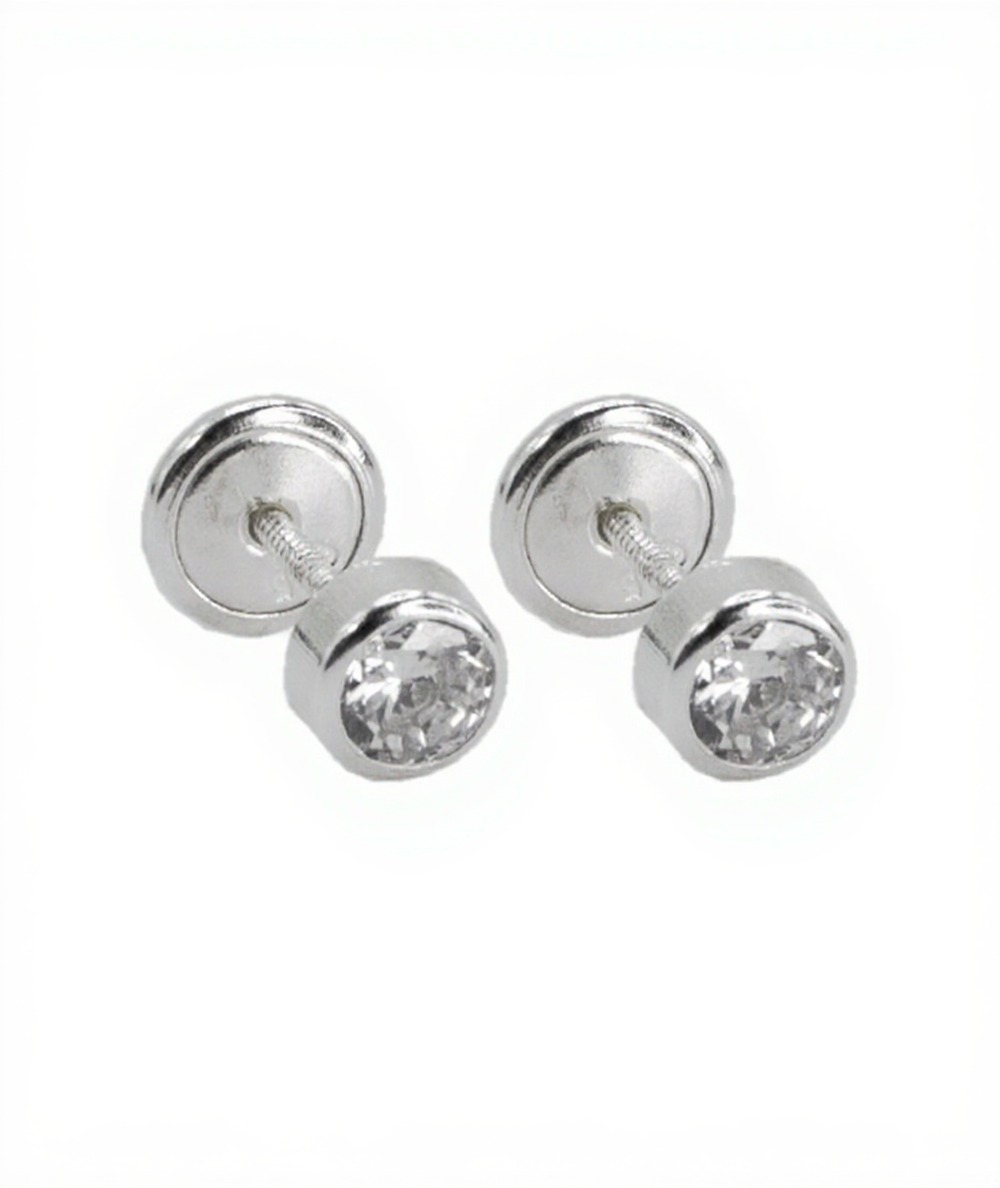 Pendientes bebé chatón con circonita en Plata 925 – 4 mm