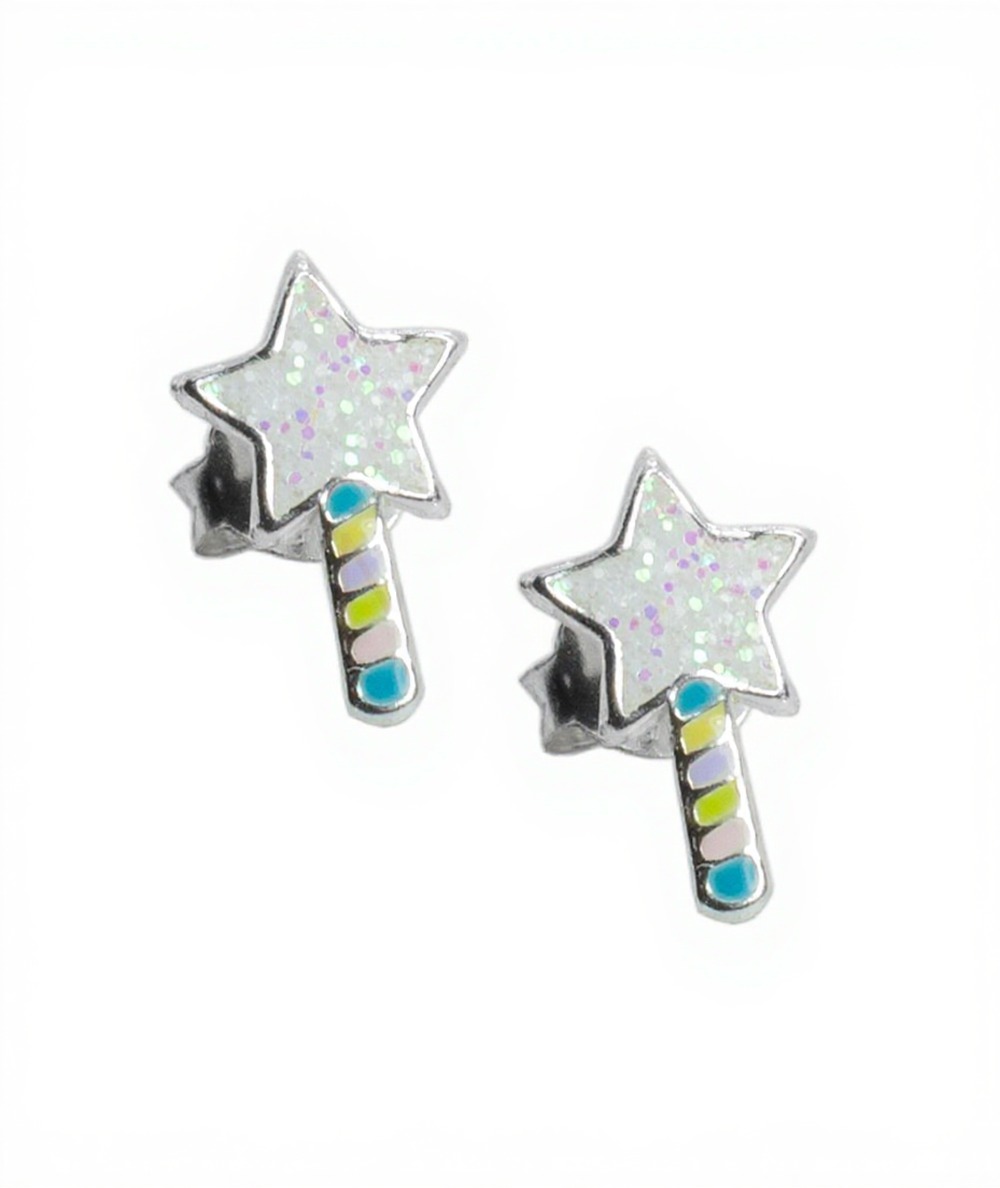 Pendientes varita con estrella multicolor en Plata 925 – 6x10 mm
