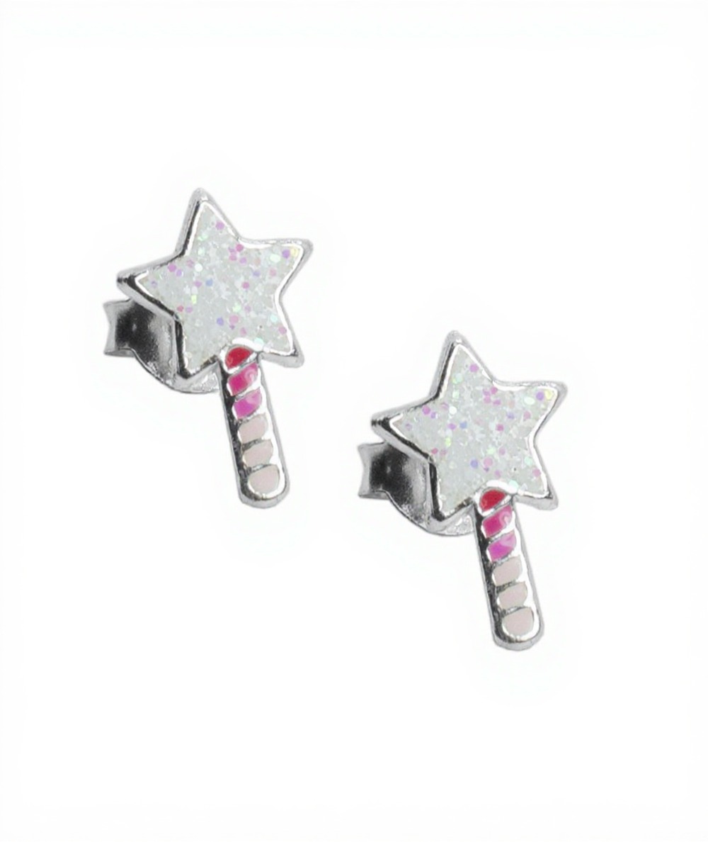 Pendientes varita con estrella rosa en Plata 925 – 6x10 mm