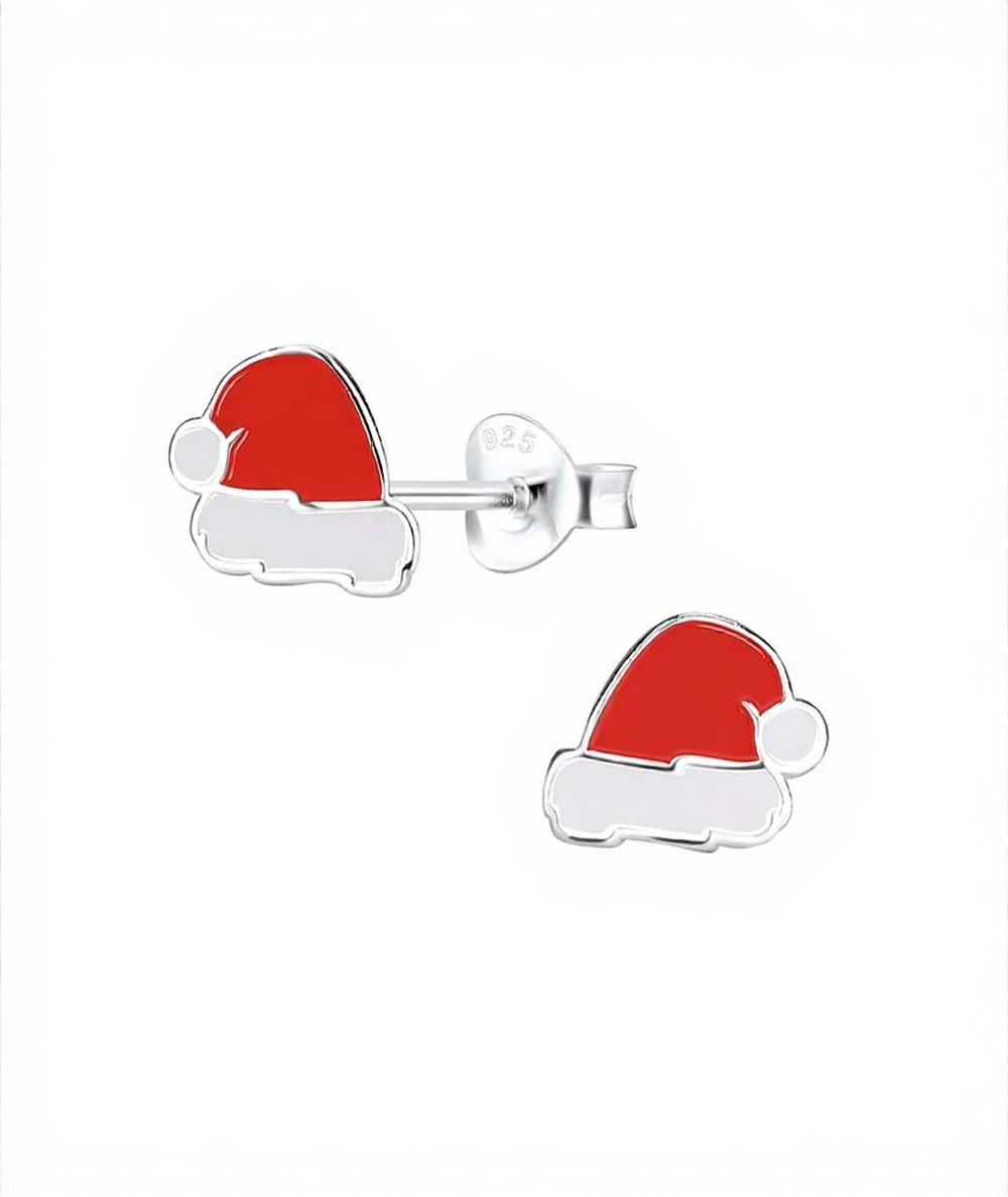 Pendientes gorro navideño esmaltado en Plata 925 – 8x7 mm