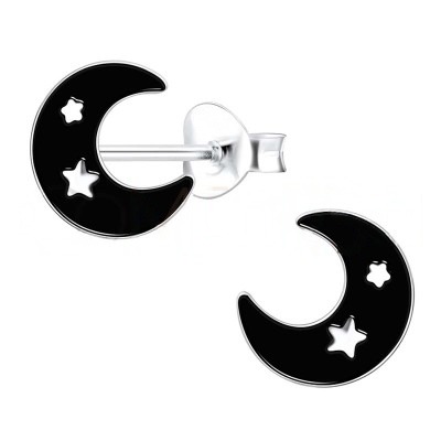 Pendientes luna esmaltada en negro en Plata 925 – 8x9 mm