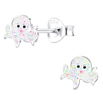 Pendientes pulpo blanco con glitter en Plata 925 – 7x7 mm