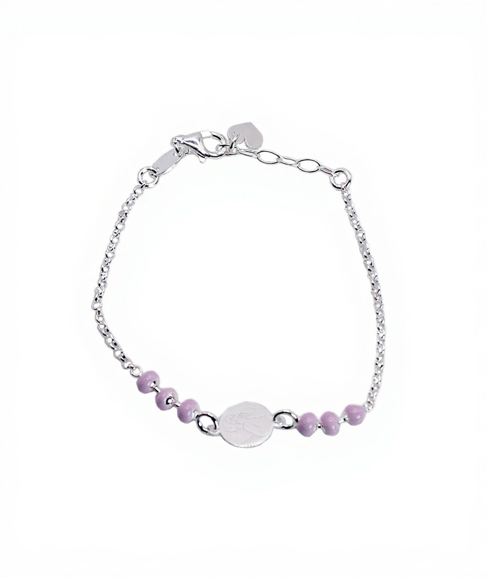 Pulsera ángel pensador esmaltada rosa en Plata 925 – 14+2 cm