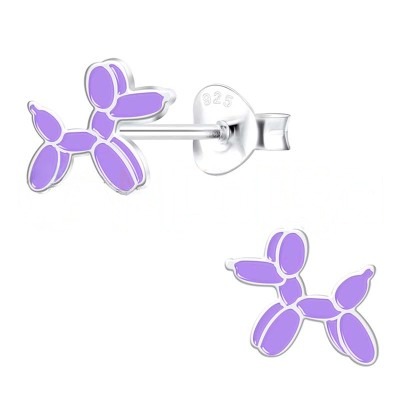 Pendientes perro globo morado en Plata 925 – 7x9 mm