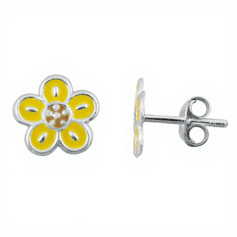 Pendientes flor amarilla en Plata 925 – 8 mm
