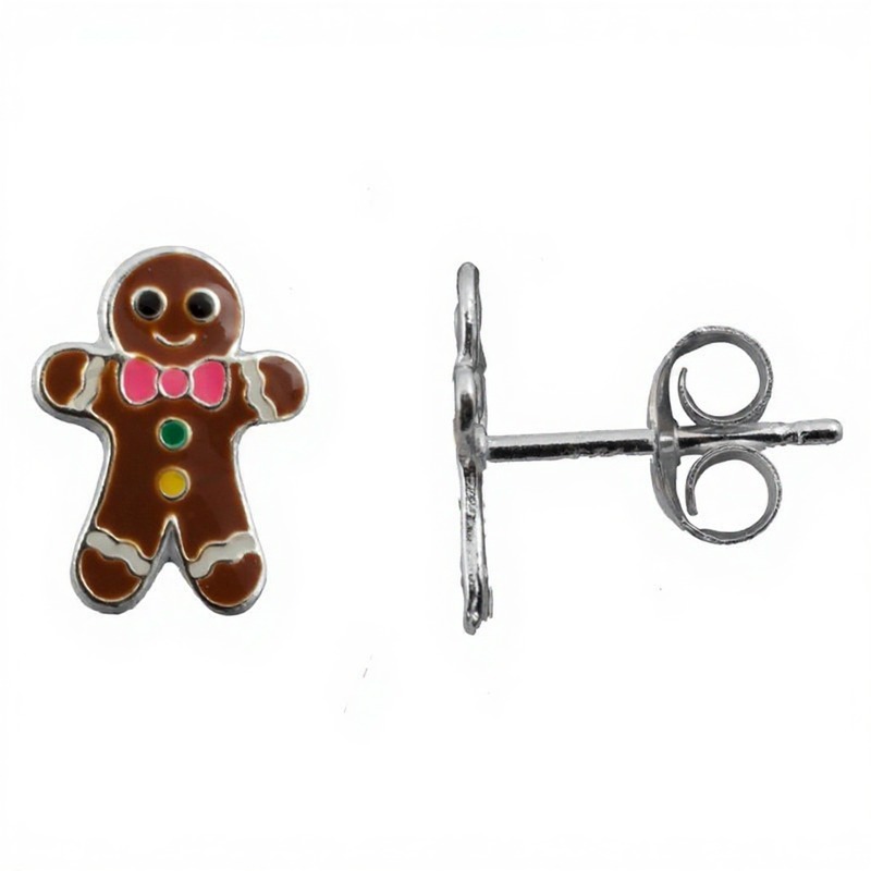 Pendientes mini galleta de jengibre en Plata 925 – 7x10 mm