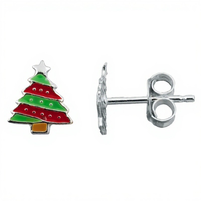 Pendientes mini árbol navideño en Plata 925 – 7x8 mm