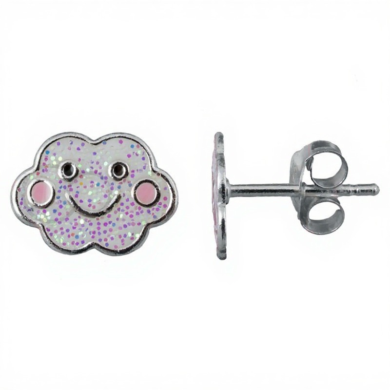 Pendientes nube con purpurina en Plata 925 – 7x9 mm