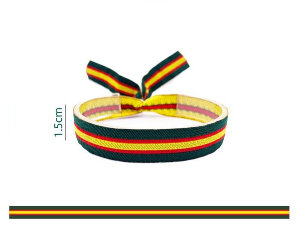 Pulsera bordada Bandera España, 15mm Verde. Cierre corredero Acero