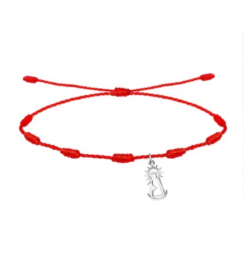 Pulsera 7 nudos roja con silueta Virgen de la Bien Aparecida, Acero Plateado
