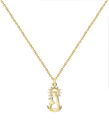 Colgante con cadena y silueta Virgen de la Bien Aparecida,  Acero Dorado