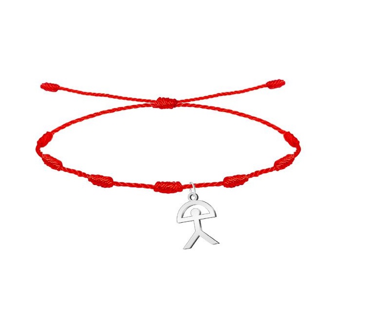 Pulsera 7 nudos Roja con colgante Indalo de Acero Plateado