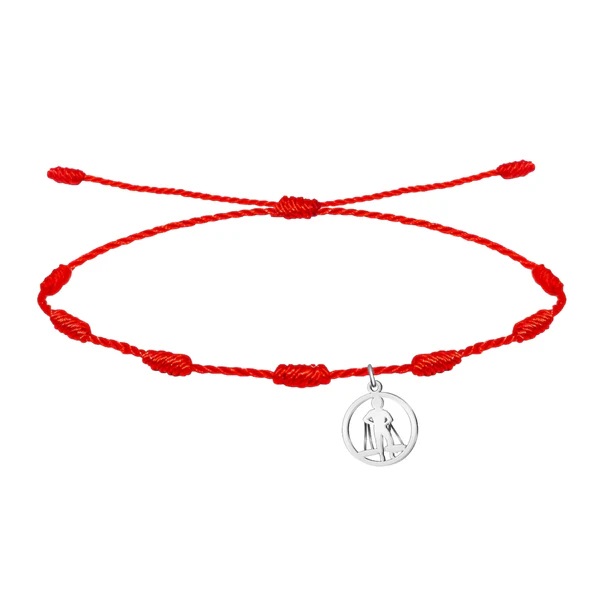 Pulsera 7 nudos Roja con el Cenachero, Acero Plateado