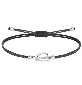 Pulsera poliéster encerado negro con Mapa de Málaga, Acero Plateado