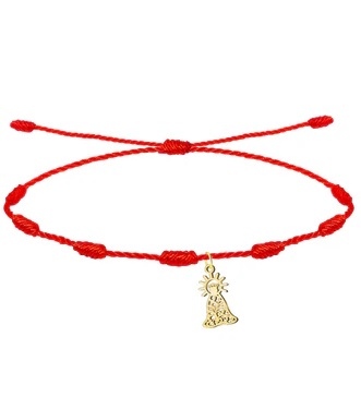 Pulsera 7 nudos Rojo con Silueta Virgen de la Esperanza Macarena, Acero Dorado