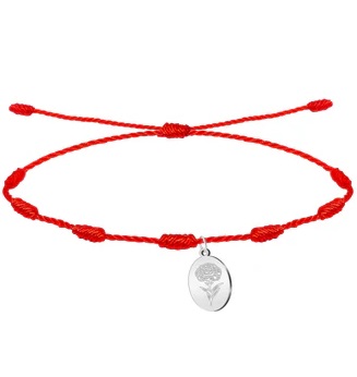 Pulsera 7 nudos Roja con Clavel, Acero Plateado