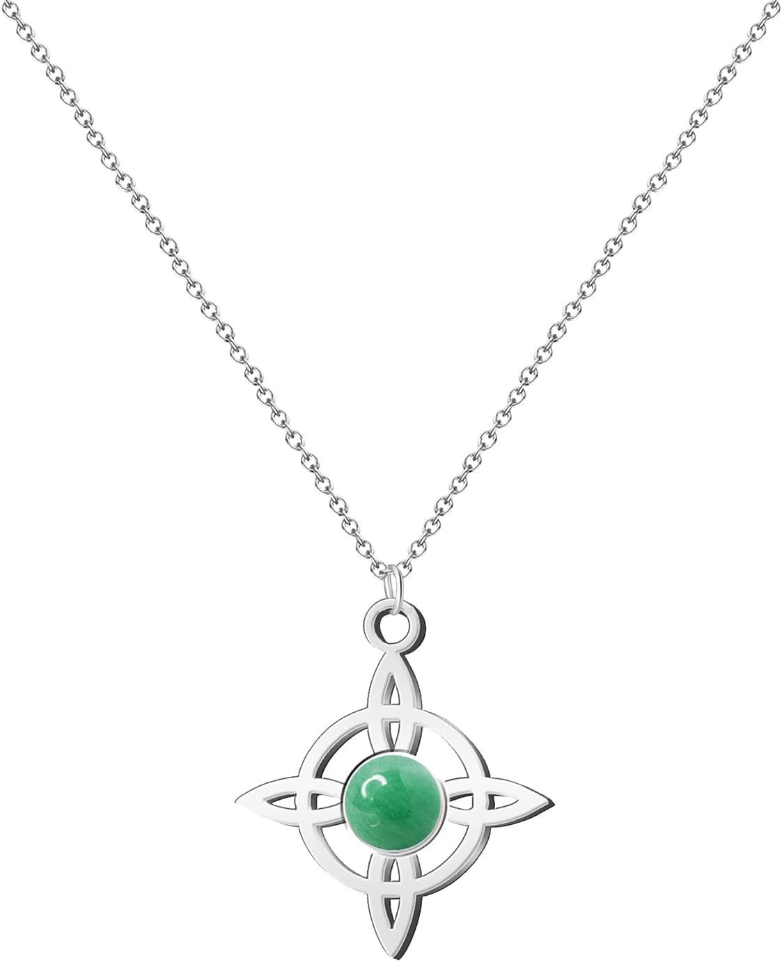 Colgante Nudo de Bruja Acero Plateado con Aventurina Verde