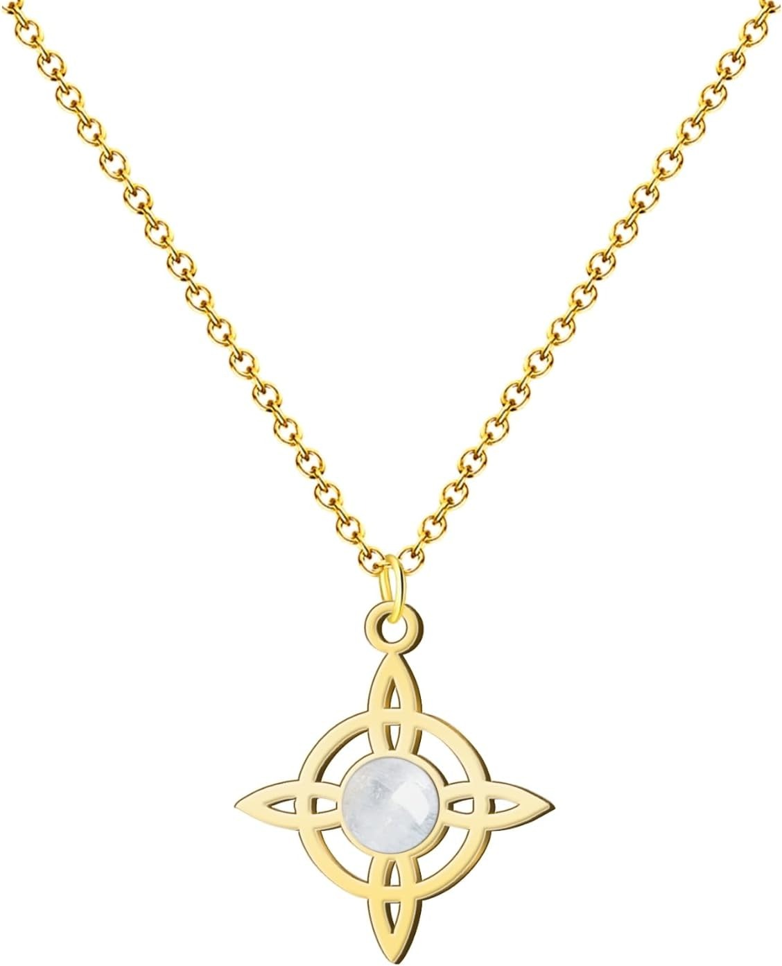 Colgante Nudo de Bruja Acero Dorado con Cuarzo Blanco