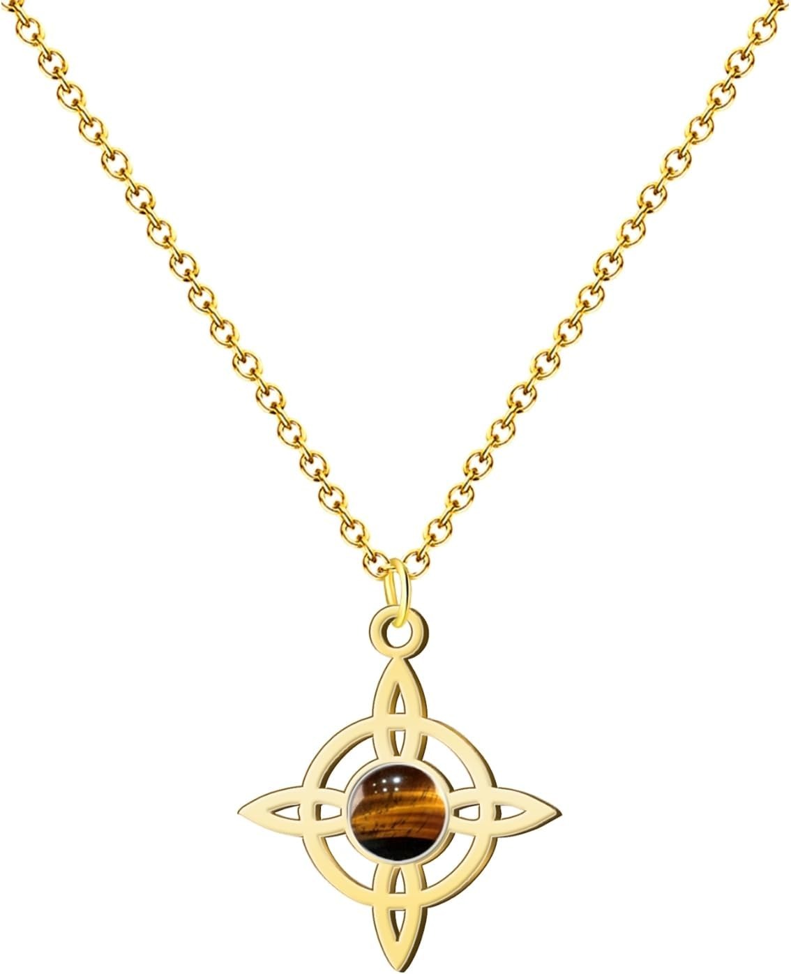 Colgante Nudo de Bruja Acero Dorado con Ojo de Tigre