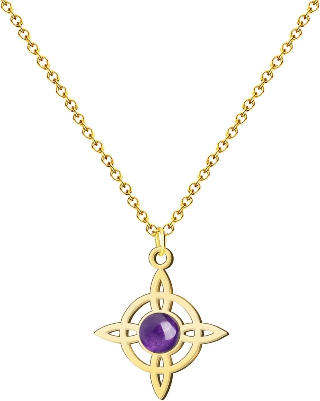 Colgante Nudo de Bruja Acero Dorado con Amatista
