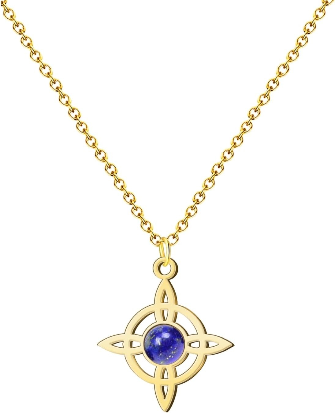 Colgante Nudo de Bruja Acero Dorado con Lapislazuli
