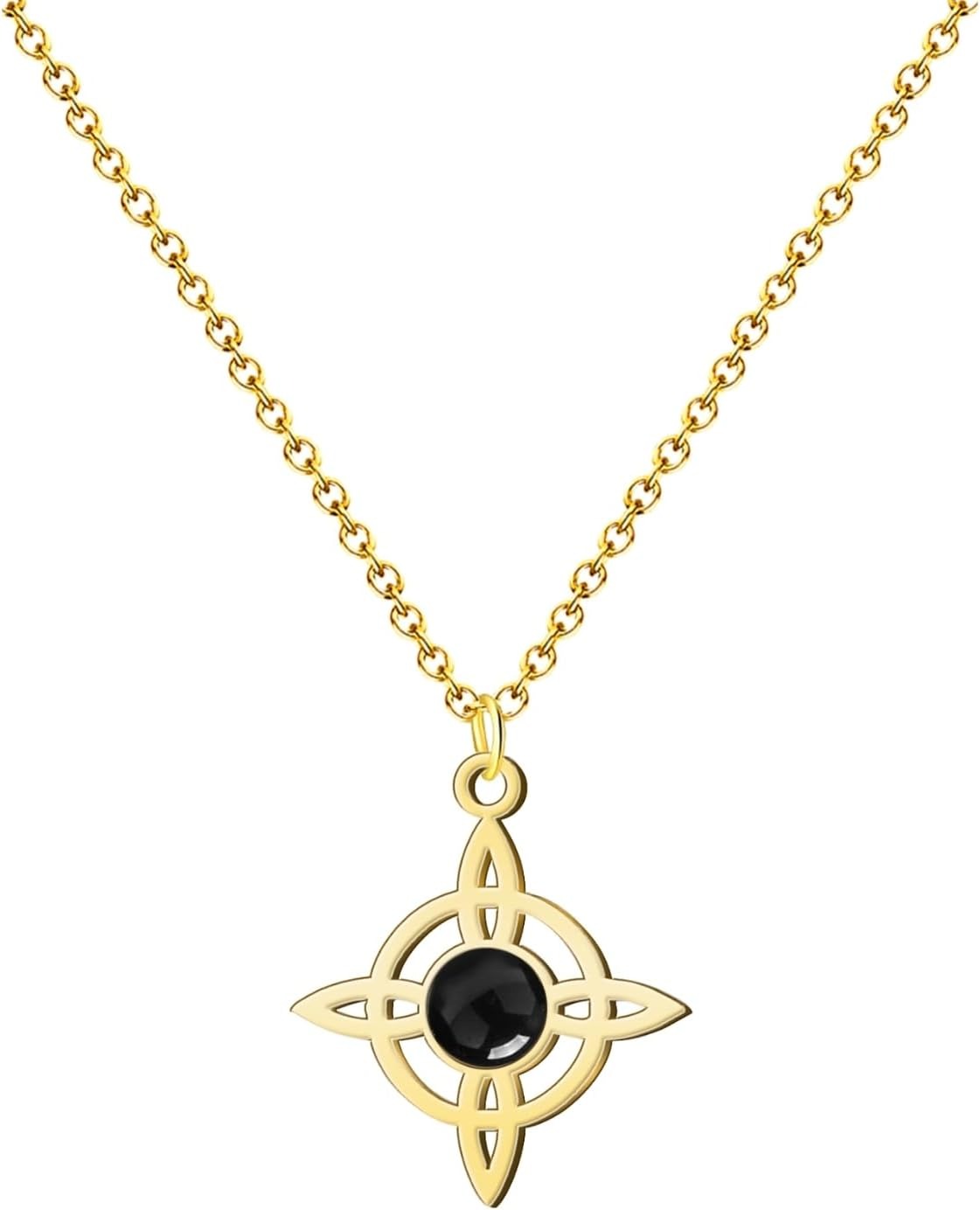 Colgante Nudo de Bruja Acero Dorado con Agata Negra
