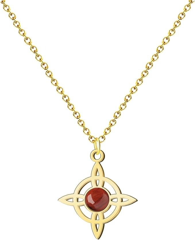 Colgante Nudo de Bruja Acero Dorado con Jaspe rojo