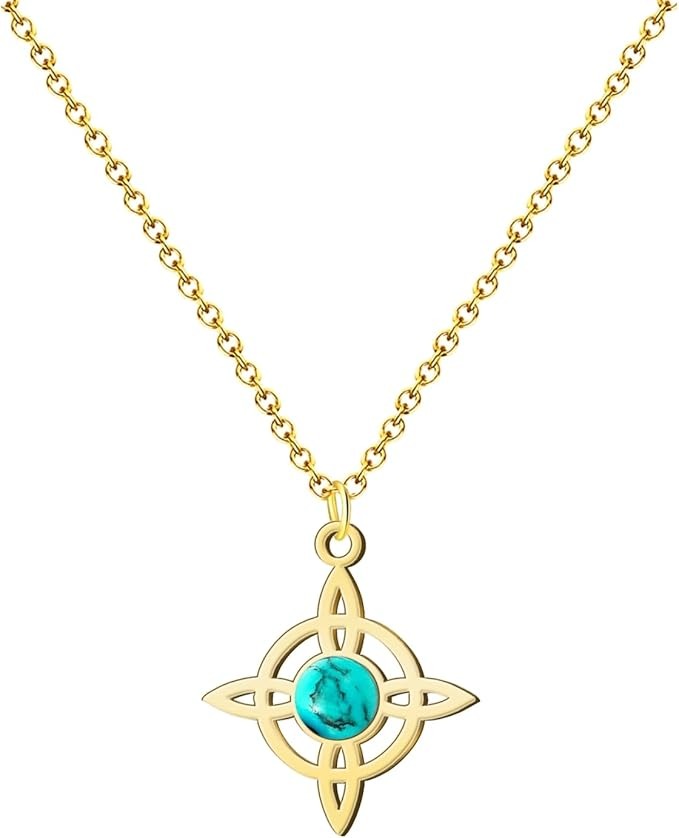 Colgante Nudo de Bruja Acero Dorado con Turquesa