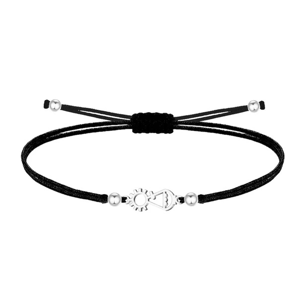 Pulsera poliéster encerado negro con silueta Virgen de Covadonga, Acero Plateado