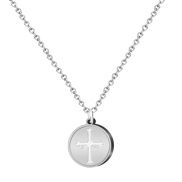 Colgante medalla con cadena Cruz de la Victoria, Acero Plateado