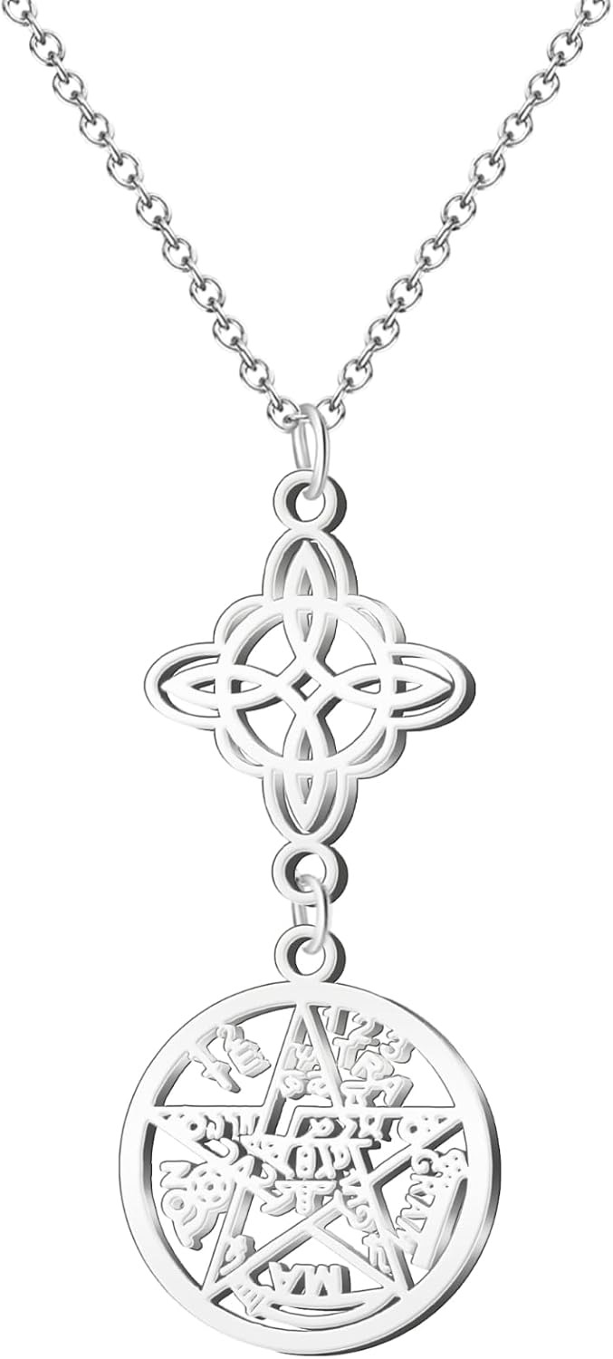 Colgante Tetragramaton con Nudo de Bruja Acero color Plateado 16x16mm
