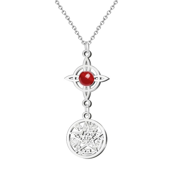 Collar acero inoxidable Tetragramaton con Nudo de Bruja y piedra Ágata carneola