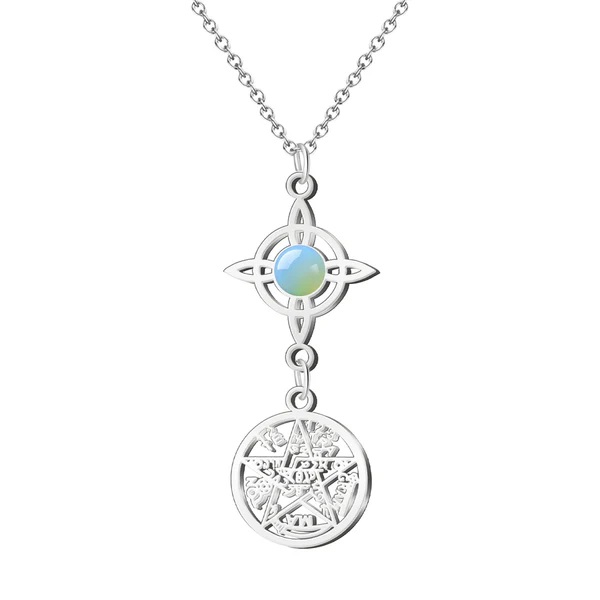 Collar acero inoxidable Tetragramaton con Nudo de Bruja y piedra Opalina