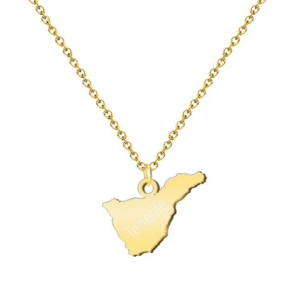 Colgante con cadena mapa Isla de Tenerife, con texto, Acero Dorado