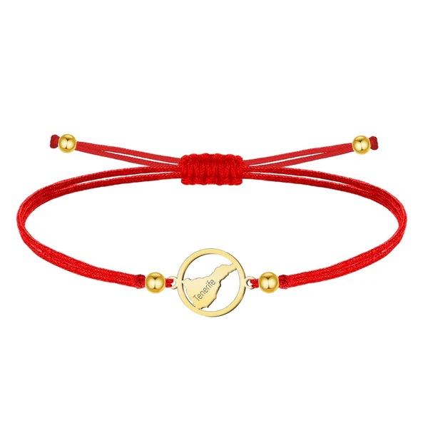 Pulsera poliéster encerado rojo, Mapa Isla de Tenerife, Acero dorado