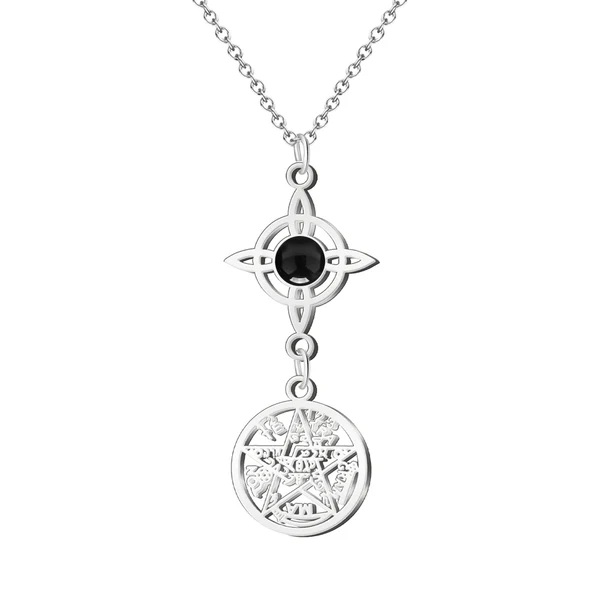 Collar acero inoxidable Tetragramaton con Nudo de Bruja y piedra Ágata negra