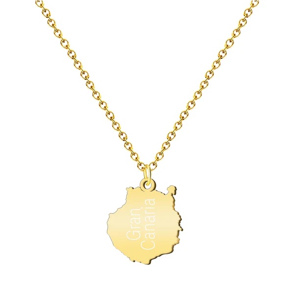 Colgante con cadena mapa Isla de Gran Canaria con texto, Acero Dorado
