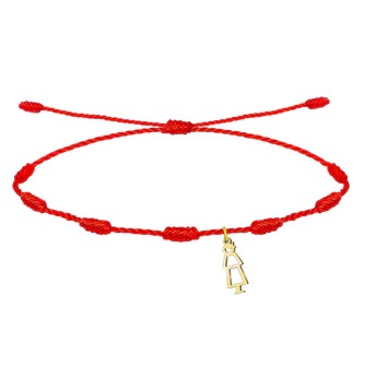 Pulsera de los 7 Nudos roja con silueta de Fallero, Acero Dorado