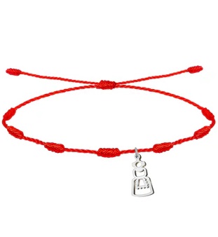 Pulsera de los 7 Nudos roja con silueta de Fallera, Acero Plateado