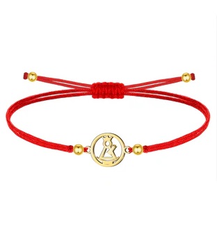 Pulsera poliéster encerado rojo con silueta Virgen del Remedio, Acero Dorado