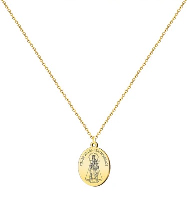 Colgante con cadena Virgen de los desamparados, Acero Dorado