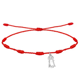 Pulsera 7 nudos roja, con silueta Virgen de los desamparados, Acero Plateado