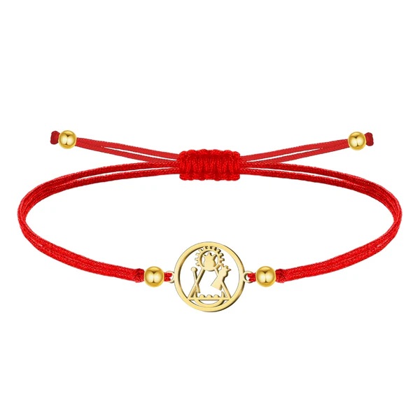 Pulsera poliéster encerado rojo, Silueta Virgen de Candelaria, Acero dorado