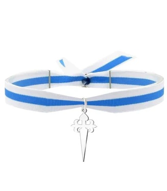 Pulsera Bandera Galicia con colgante Cruz de Santiago, Acero Plateado