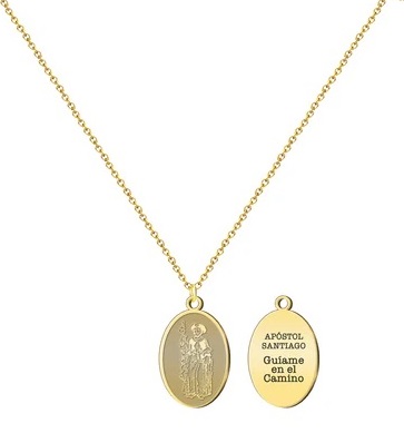 Colgante con cadena Santiago Apostol, Guíame en el camino, Acero Dorado