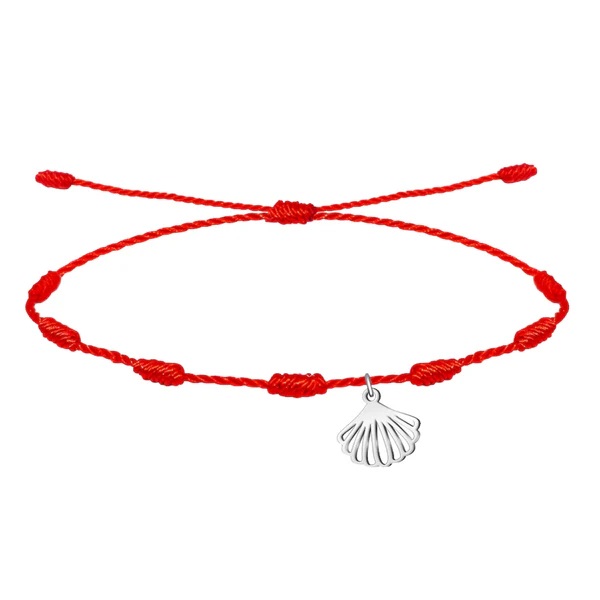 Pulsera 7 Nudos roja con Concha, Acero Plateado