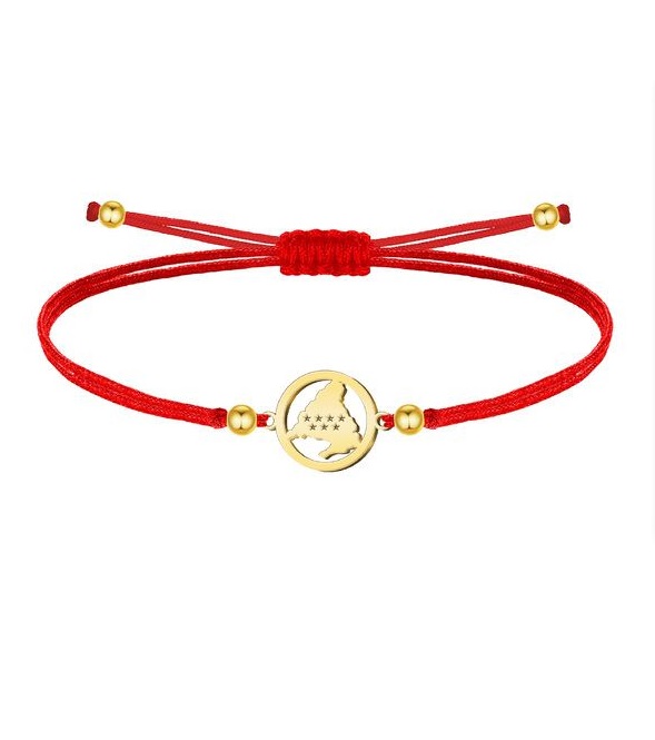 Pulsera poliéster encerado rojo Mapa de Madrid, Acero Dorado