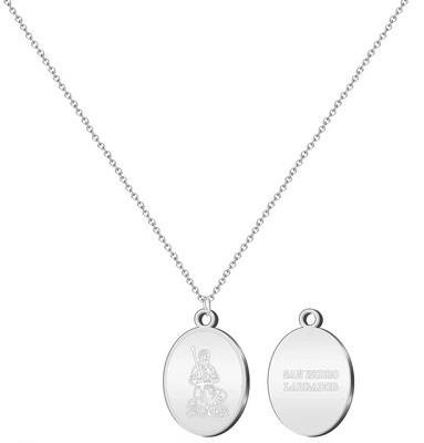 Colgante y cadena San Isidro Labrador, texto, Acero Plateado